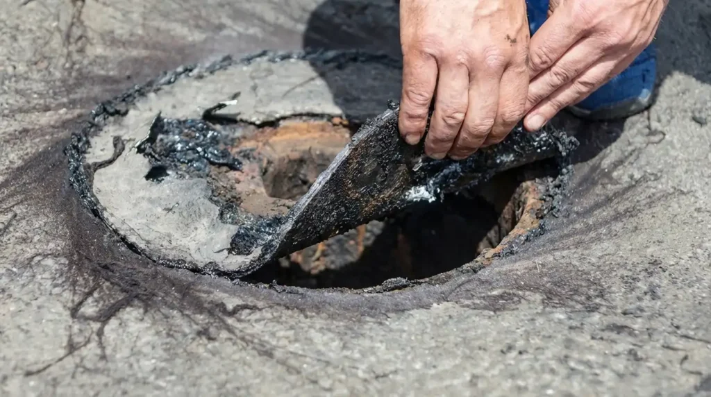 Avant l’installation, le toit est inspecté pour vérifier l’état de la structure, du support et de l’isolation. Les anciens matériaux endommagés sont retirés et la surface est nettoyée afin d’assurer une base solide et uniforme pour la nouvelle membrane.
